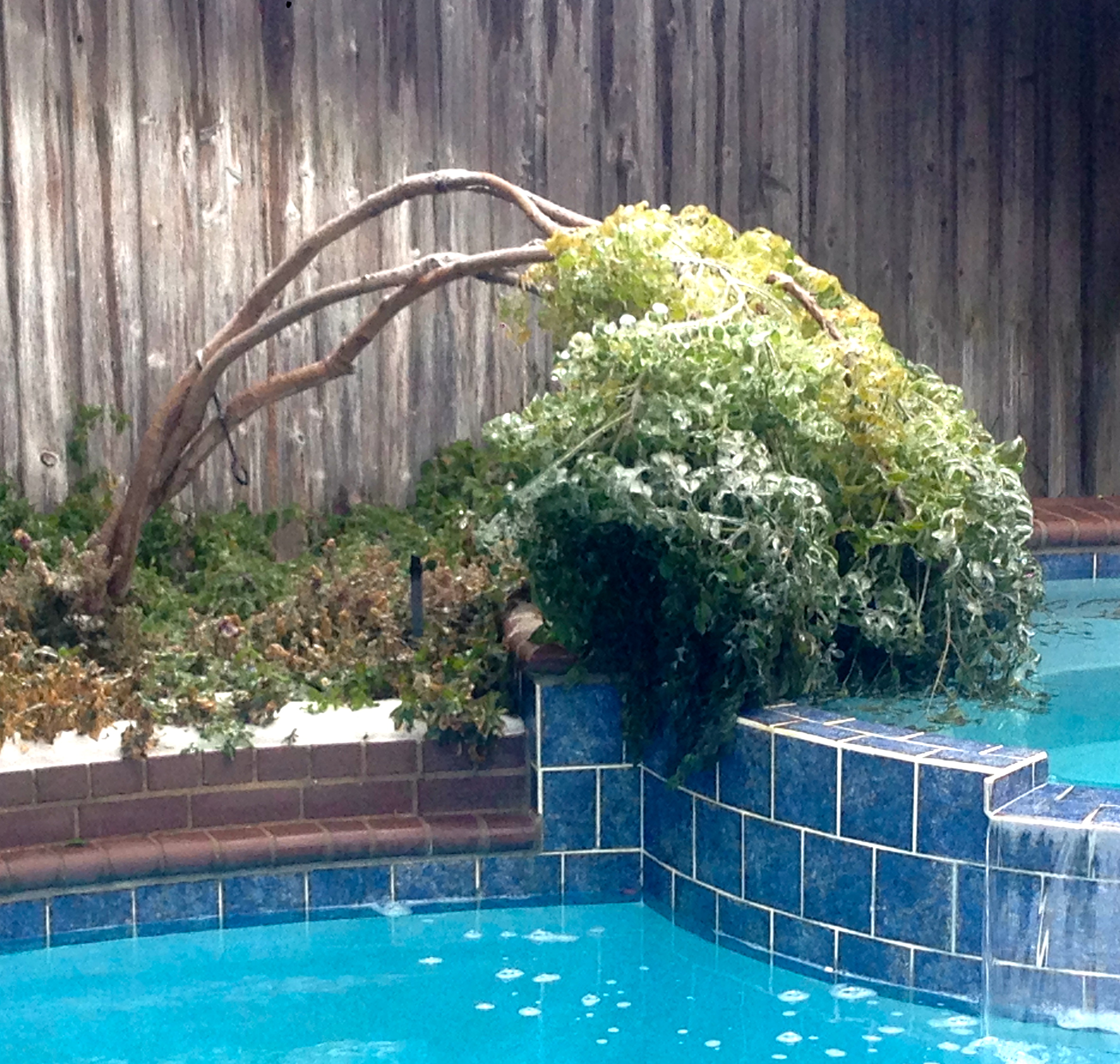Last month we had a horrible ice storm, we lost power and were literally unable to get out and about for a couple of days (this is very uncommon here in Texas). As I was surveying the damage around my house and trying to break the ice away from the back door, I looked outside and noticed my little tree “Lacey” (see my blog post about Lacey and growing strong). She has had a difficult time this winter. It was only earlier in the fall that I planted her outdoors in my garden – she was trying to grow from a houseplant to a real tree for the first time. When I looked outside at Lacey, in horror I saw that this little spindly baby-tree was bent all the way over at her slender trunk and submerged in the water of my hot tub! The heavy weight of the ice on her delicate face of leaves had been more than she could handle.