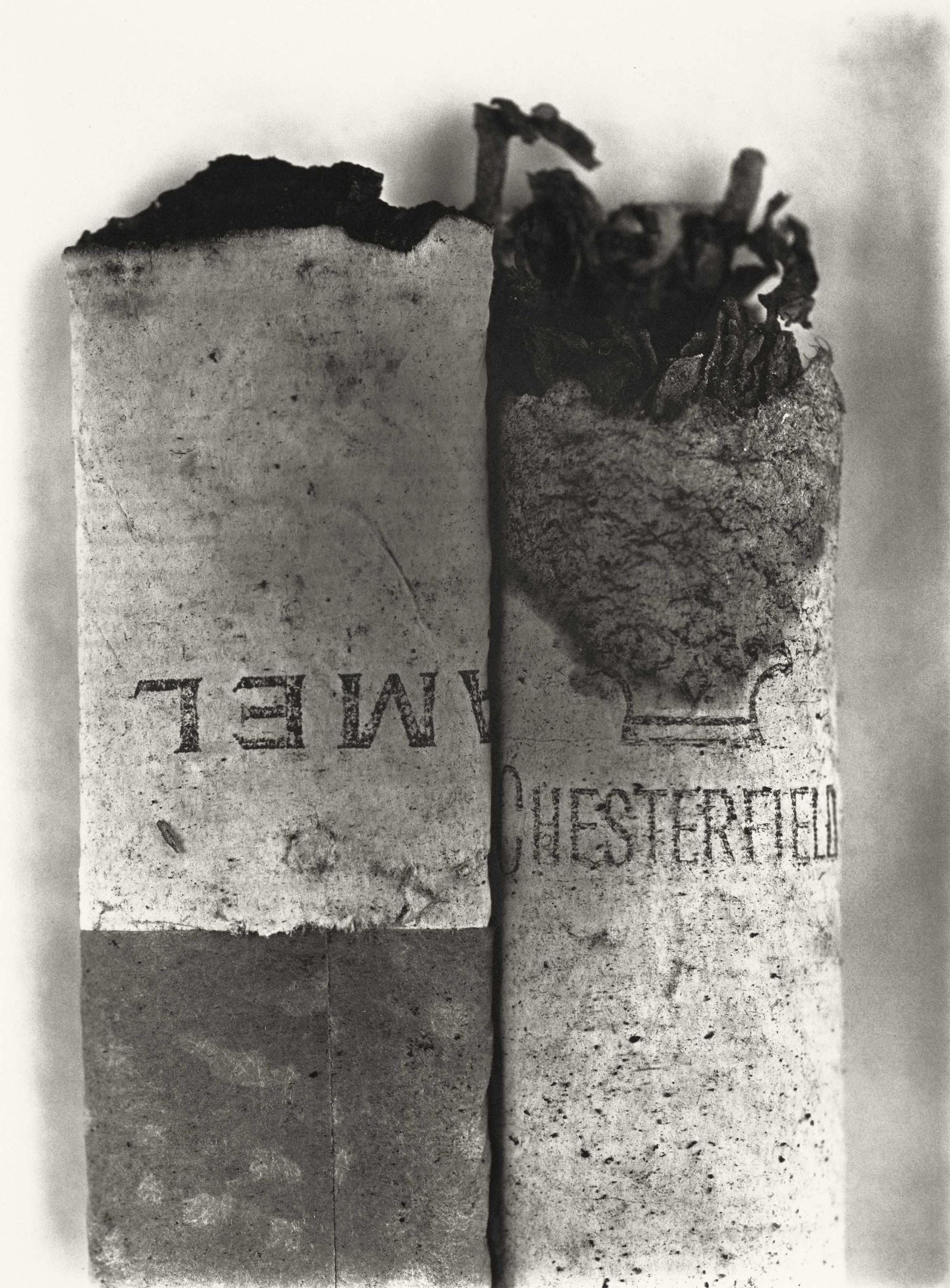 In 1972, Penn produced a series of platinum prints of smoked-down cigarette butts. He shot the discarded cigarettes in much the same way that he shot high-end products — each cigarette, and its ashes, was perfectly composed against a white background. “The elegance of these pictures is similar to that which we find in his pictures for Chanel’s cologne for men, for Clinique’s lipstick or in brightly colored still lifes of flowers,” Michiko Kasahara wrote in an essay in Irving Penn Photographs (1997). “Whether the subject be cigarette butts or high fashion, they find equivalence through the elegance of Penn’s technique.” Although the beauty of these images is incontestable, Penn himself was strongly against smoking, and these images contain that sentiment. In 1975, Cigarettes was exhibited at the Museum of Modern Art. “That single exhibition,” Francis Hodgson wrote in the Financial Times in 2012, “overcame the strong prejudice against ‘commercial’ photographers being welcomed in the museum.”